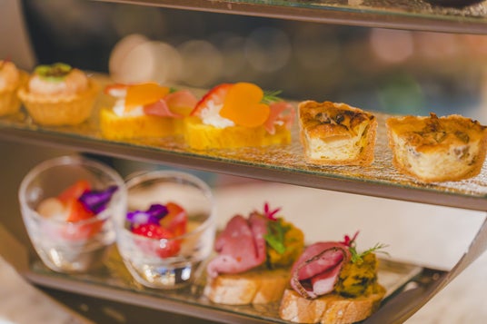 <セイボリー>人参のケークサレと生ハム苺/ホタテ貝とあまおうのマリネ/タラと明太子のブランダード/ローストビーフと南瓜のサンドイッチ/ブルーチーズとリンゴのキッシュ