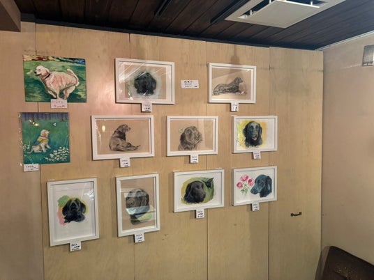 ジャズ音楽の演奏とともに、介助犬使用者の山内稔氏と介助犬グラディスを招き、山内氏が描く絵画も展示即売をした。