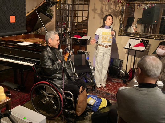 介助犬使用者の山内稔氏は、「ジャズは好きですが、ライブハウスにはバリアが多くて、このような機会がなかったら来ることはなかった。これからは個人的に遊びに来たい」と笑顔で話した。