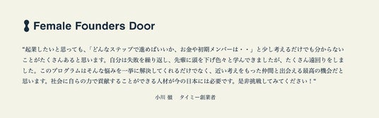 ▶︎Female Founders Doorに関する詳細な情報は特設のページからご覧ください