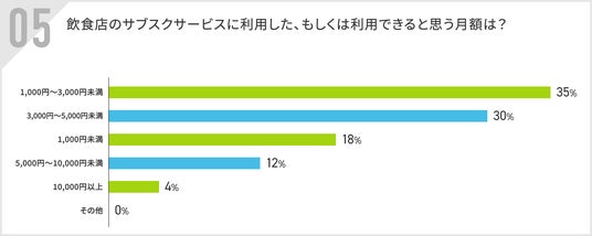 飲食店のサブスクサービスに支払える月額は「1,000円~3,000円未満」が35%