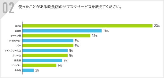 使ったことがある飲食サブスク「カフェ」が23%で最多
