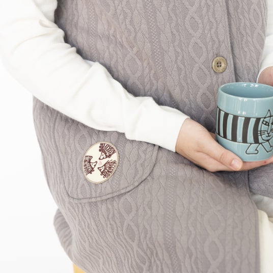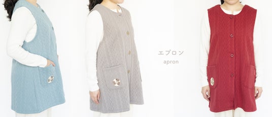 裏起毛あったかチュニックエプロン(ワンポイントハリネズミ・背付き)カラー:グレー、レッド、ブルー