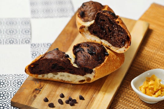 チョコと柚子、山椒を練りこんだ京生食パン生地をフランス生地で包んで焼き上げました。