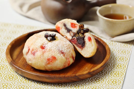 甘酸っぱさとこしあんの味わいが絶妙にマッチ。ベーグルの食感と餅の食感が合わさり、よ