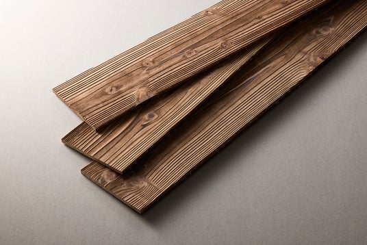 杉板の二面を火であぶり浮造り加工を施し、表面全体を炭化し、耐久性・耐腐食性を高めています。