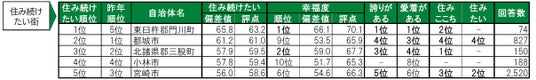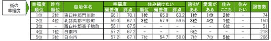街の幸福度&住み続けたい街ランキング<TOP5> & 各種ランキング順位