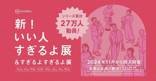 累計来場者数27万人を動員した『いい人すぎるよ展』シリーズ最新作。こどもたちが考えた『いいひとすぎるよてん』や各都市限定の「ご当地コンテンツ」も登場