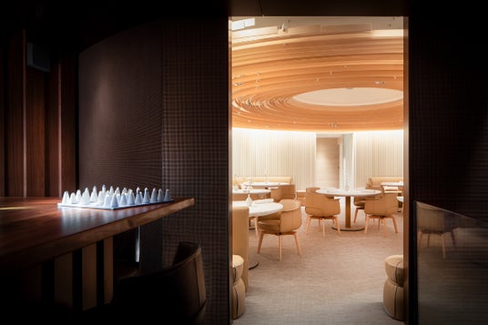 店を構えるのは約30年間ミシュラン2ツ星を守ったアンリ・フォジュロン氏の伝説的名店のあった場所。隈研吾建築都市設計事務所デザインによる現代美術の舞台のような内装は、唯一無二の空間です。