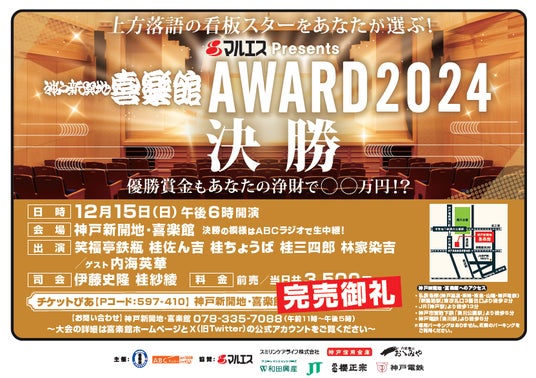 地域の街興しと上方落語の更なる発展を目指して上方落語の定席「神戸新開地・喜楽館」とABCラジオがタッグを組んだ「マルエスPresents 神戸新開地・喜楽館AWARD2024」。