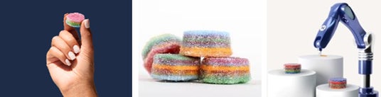 NOURISH3Dは、3Dプリント技術を活用した栄養食品を提供するイギリス発のスタートアップ企業「Rem3dy Health(レメディ・ヘルス)」が開発した、7つの栄養成分が1粒になったパーソナライズ・サプリメントグミです。ウェブサイト上で回答した睡眠状況など直近の体調、食生活、運動頻度や味の好みなどをもとに、32の栄養成分・600億通りの中から、一人ひとりに合わせたサプリメントグミをお届けします。