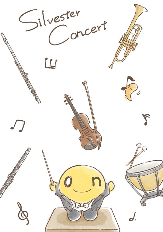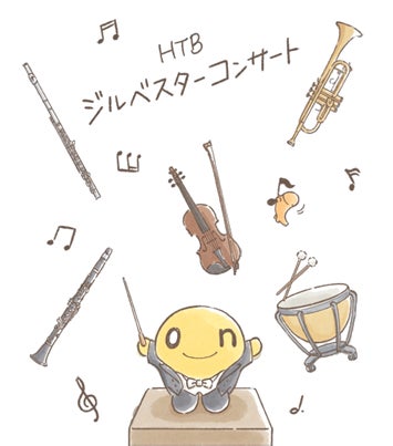 メインビジュアルとなるのは指揮者としてタクトを振るonちゃんとその周りを飾るオーケストラでおなじみの楽器たち。鳴り響く音が音符として表現されていて、よく見るとぐちも音に乗っています。このために描き下ろしをした、HTBジルベスターコンサートとonちゃんのコラボイラストです。