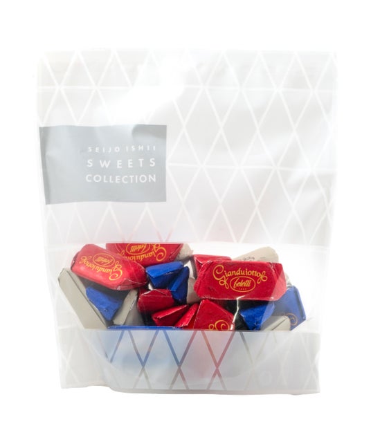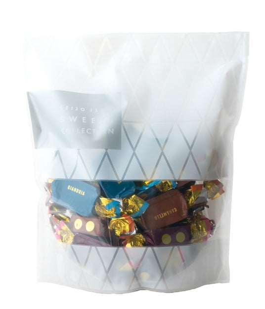 今季販売する小袋サイズの一部商品には、オリジナル商品の菓子としては初めての試みとなる「紙製ハイバリア軟包材」をパッケージに使用しました。従来は耐久性や品質、価格のバランスなどの兼ね合いから導入が難しかった包材ですが、今回は手触りの良さと耐久性を兼ね備えた素材を採用。製品となる前の個包装のチョコレートを大量に輸入する「バルク輸入」を活用し、自社セントラルキッチンでパッケージングしています。中身がほのかに透ける仕様のため、プレゼントにも最適です。