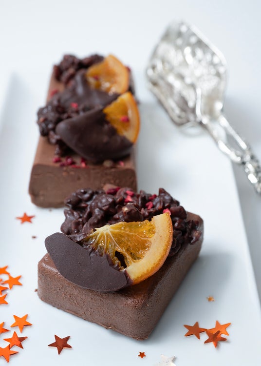 今回のフェアにあわせ、成城石井の自家製商品の製造拠点であるセントラルキッチンのパティシエが腕によりをかけ、新しくデザートを開発しました。テリーヌ部分は、チョコレートの風味をより強く感じていただくために原材料の配合にこだわり、低温域でじっくり湯せん焼きしています。また、クリームチーズを入れることによって、滑らかさとコク、ミルキーな風味をプラスしています。