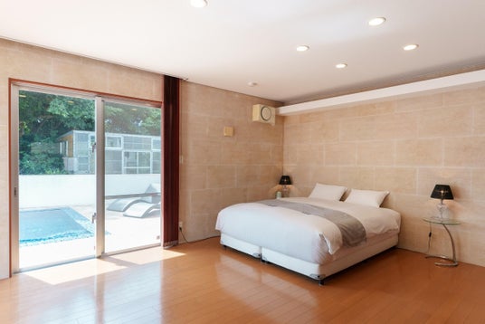 プールサイドに位置するベッドルームは、窓を開ければ心地よい風が感じられます。シンプルで上質な家具と落ち着いた色調の内装が、静かでリラックスした雰囲気を作り出します。