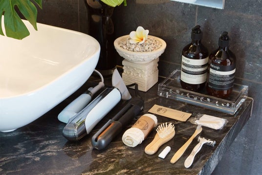 フェイスタオル、バスタオル、バスローブ、ボディタオル、歯ブラシセット、ヘアブラシ、カミソリ、パフセット、糸ようじ、シャンプー/コンディショナー/ボディソープ(Aēsop)