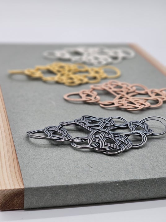 これまで水引はどちらかというと贈り物を包むラッピングの意味合いが強いものでした。そこで水引を金やプラチナなどの貴金属で作成することが出来れば、想いの込もった水引自体にもっと価値をつけることが出来るのではないかと考え、貴金属製の水引を企画いたしました。