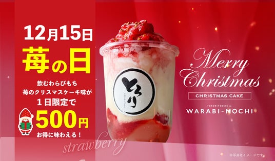 全国にとろり天使のわらびもちを展開する「とろり天使のわらびもち株式会社」は、12月15日(日)限定で「いちごの日」と題して、クリスマスシーズン限定『飲むわらびもち 苺のクリスマスケーキ味』を通常780円(税込)のところを、特別価格として500円(税込)で限定販売いたします。(一部店舗にて実施)
