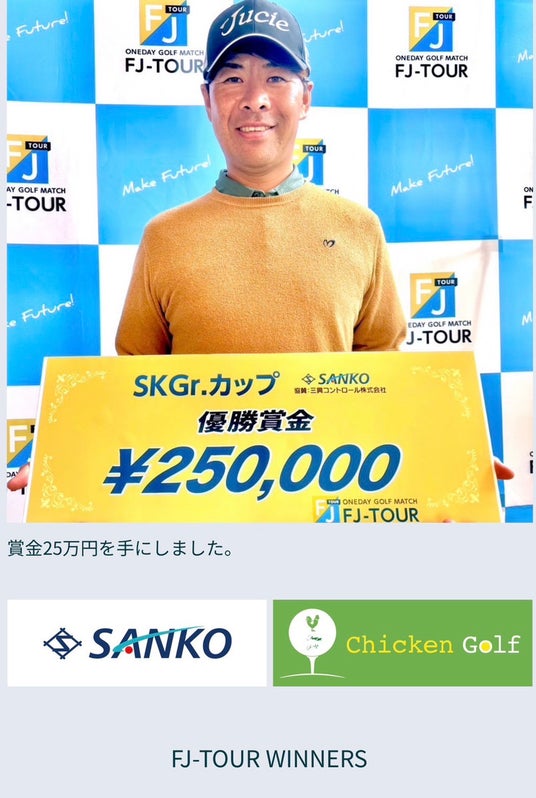 プロ男子の部では、千葉夷隅ゴルフクラブ所属の津曲 泰弦プロがスコア68(-4)の好成績を収め、FJ-TOURでの初優勝を果たしました。