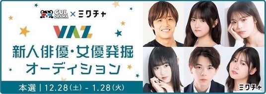 また、一次審査を通過できなかった方も配信アプリ「ミクチャ」上での配信審査を経て、配信におけるランキングが1位の方は「CUL DRAMA」へ出演を確約させていただくほか、2~5位の方は実技審査(演技)に進んでいただき、出演者を選出いたします。