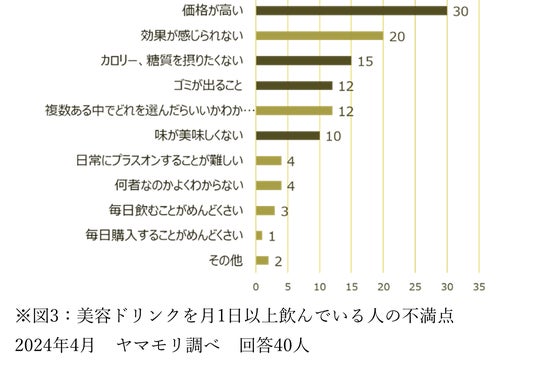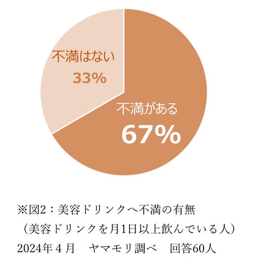 美容ドリンクを飲んでいる方の67%が何かしらの不満を感じています(※図2)。