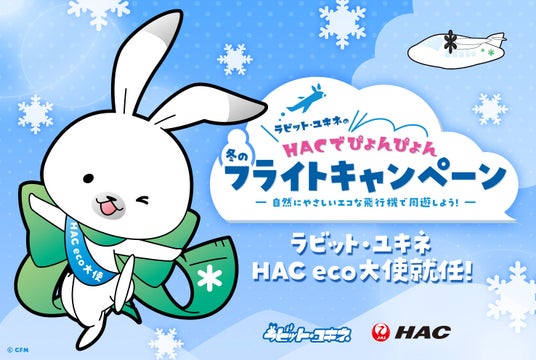 就任記念として実施する「ラビット・ユキネのHACでぴょんぴょん冬のフライトキャンペーン~自然にやさしいエコな飛行機で周遊しよう!~」の詳細は以下の通りです。