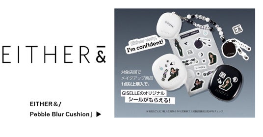 チャームはEITHER&のモデル撮影時に協業したスタイリストと共同開発したデザインで、ブランドのブラック&ホワイトアイデンティティを上手く反映出来たと思います。ステッカーに関しては、ブランドミューズのジゼル様の特別ノベルティを製作したく、ファン心で製作いたしました。チャームとステッカーをお客様のお好みでカスタムし、自分だけのクッションファデを作ることを、よりたくさんの人に楽しんでもらえたら嬉しいです。