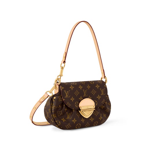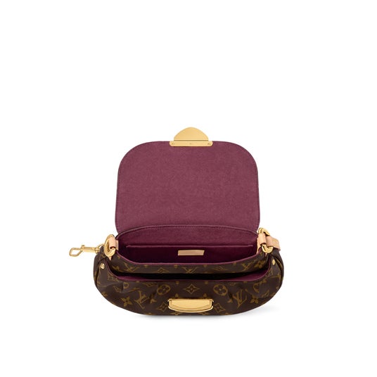 ヴィンテージ風のデザインにヌメ革のトリミングを施し、メゾンならではの差し込み式ロックなどゴールドカラーのメタルパーツでアップデートしました。付属のレザーストラップでクロスボディバッグやショルダーバッグ、または手持ちでも楽しめる多用途なアイテムです。長財布などの普段の必需品を持ち運ぶのに最適です。