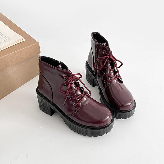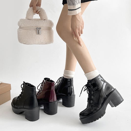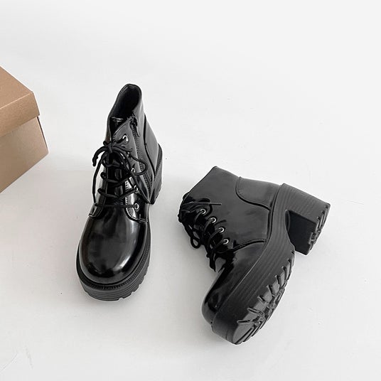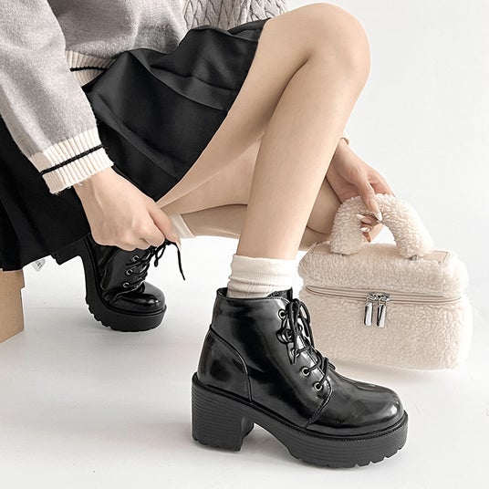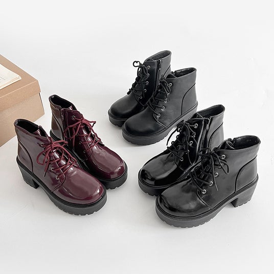 商品名:超軽量厚底 レースアップ ヒール ショートブーツ 2805