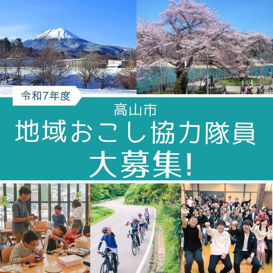そうした課題を解決するため、高山市では、令和7年4月から地域の団体と一緒に活動する「地域おこし協力隊員」を募集しています。地域の活性化に意欲ある若者を「地域おこし協力隊員」として受け入れ、受け入れ先の団体と一緒に活動し、外部・若者からの視点による新しい地域の魅力の発掘や、地域の活性化に向けた新たな取り組みを企画・提案し実施していただくことで、持続可能な地域づくりにつなげます。