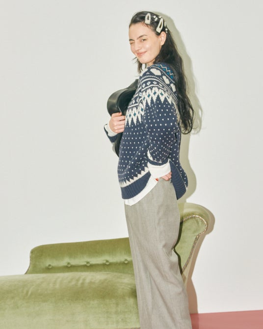 人気のハートモチーフをあしらったクラフト感のあるフェアアイルニット。ウール混でふっくら厚みがありながらも、柔らかくチクチクしない肌触りが魅力。