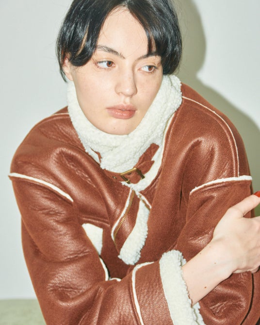 スタイリッシュなトレンド感が叶うB-3ジャケット。フェイクレザーとボアの質感と首元のベルトがクールな印象がありつつも、ショート丈で女性らしさもあるバランス感がたまらない!