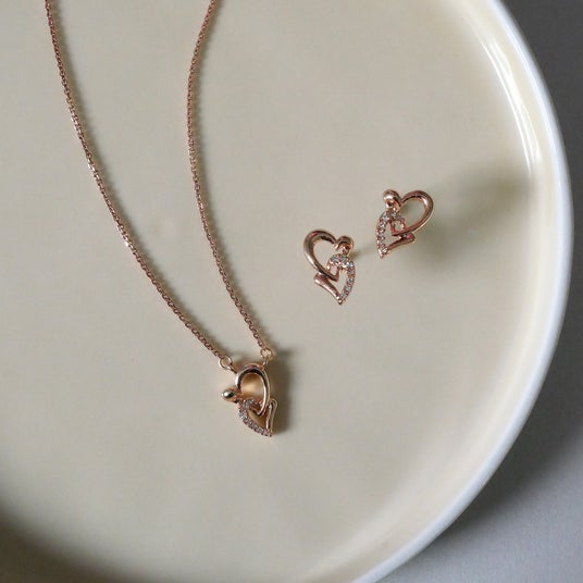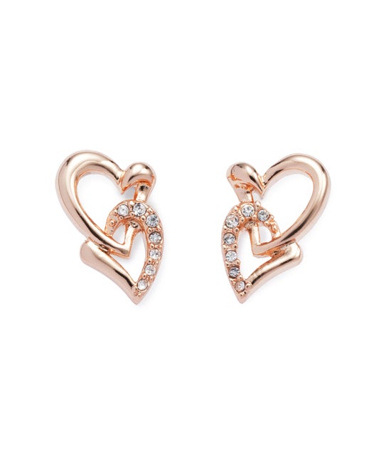 ハートモチーフが縦に並んだピンクゴールドカラーのキュートなネックレス。抜け感があり、軽やかに着けられるデザイン。ファーストジュエリーにも。
