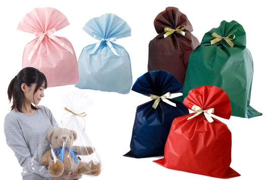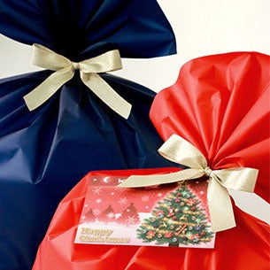 通常のラッピング(クリア・ピンク・ブルー(水色))に加え、クリスマス限定カラー(レッド・ブルー・ブラウン・グリーン)が選べます。