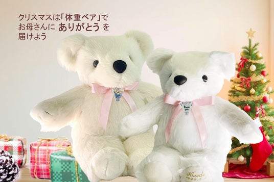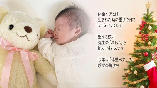 感動を重ねるクリスマスに。「おかあさん いつも ありがとう」生まれた時の重さで作るテディベア。その重みに「感謝」の想いを込めて。「体重ベア/ウエイトベア」でいつもと違うクリスマスを演出します。