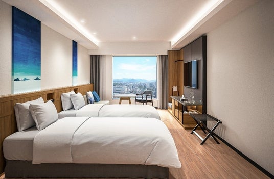 コンセプトフロアの客室は、大きな窓と、白を基調とした壁面には、瀬戸内の海を表現したアートが施され、広島駅直上でありながらもまるで瀬戸内の静寂な海に浮かんでいるような穏やかさと静けさを感じていただけます。また、同フロアにはステーションスイートやトリプルを備えるほか、「味覚で愉しむ、見て愉しむ、触れて愉しむ、香りで愉しむ、聞いて愉しむ」の五感で瀬戸内を愉しんでいただくサービスで、特別なひとときをお約束します。