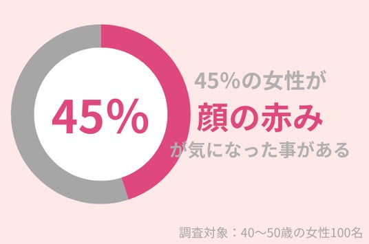株式会社アースケアは40-50歳の女性100名に「顔の赤み」に関する調査を行いました。