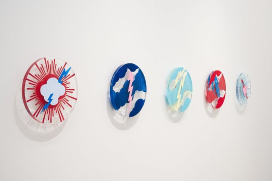 本展では、雲のシルエットを象った大型作品からアクリルの支持体を活用した作品まで様々な絵画作品を展示公開しています。