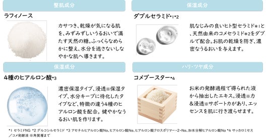 * アセチルヒアルロン酸Na、ヒアルロン酸Na、ヒアルロン酸クロスポリマー-2-Na、加水分解ヒアルロン酸Na