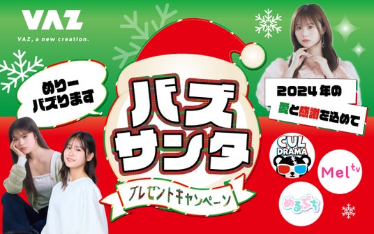 株式会社VAZ(本社:東京都中央区、代表取締役社長:谷鉄也、以下「VAZ」)は公式LINEアカウント(アカウント名:VAZ【公式】、アカウントID:@vazline)のリニューアルを記念し、抽選で100名様に所属タレントからプレゼントが届くクリスマスキャンペーンを開催いたします。
