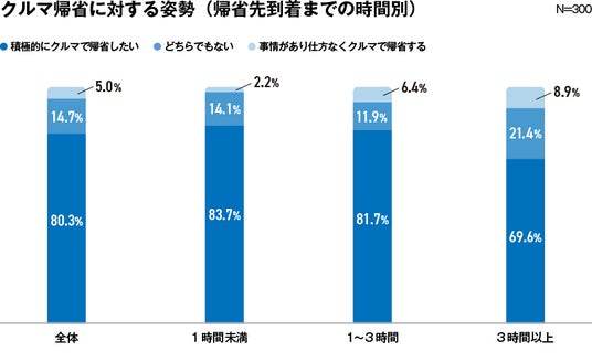 長距離運転も気にしない「積極的クルマ帰省」派が多数