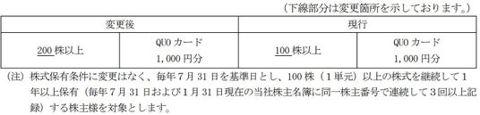 2025年3月1日を効力発生日とする当社普通株式の分割を実施することに伴い、株主優待制度を次のとおり一部変更いたします。