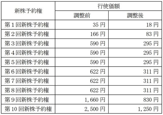 今回の株式分割に伴い、当社発行の新株予約権の1株当たりの権利行使価額を2025年3月1日以後、次のとおり調整いたします。