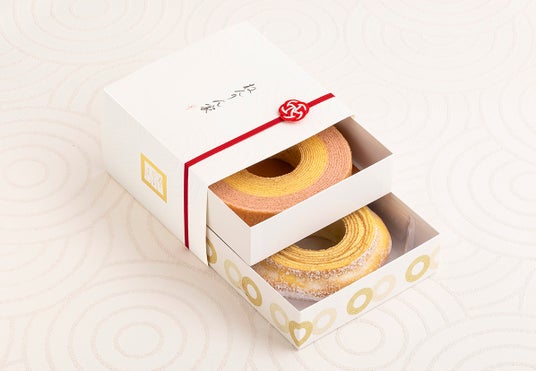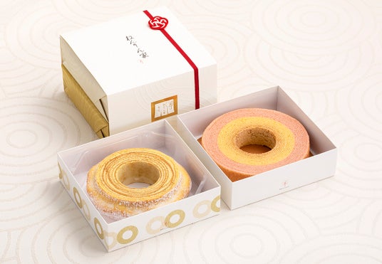 2025年のお祝いに。紅白の二重の円(縁)が華やかなバームクーヘンが登場!