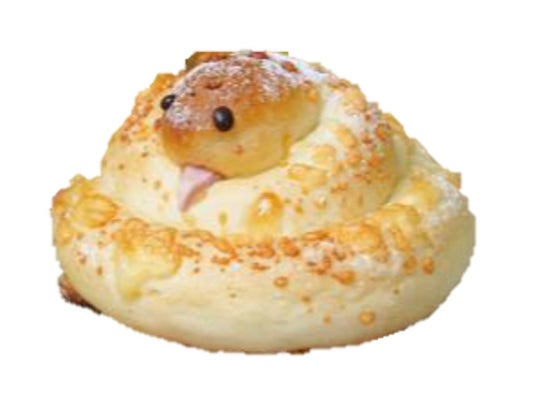 とぐろを巻いたへびがモチーフの甘塩っぱい菓子パン