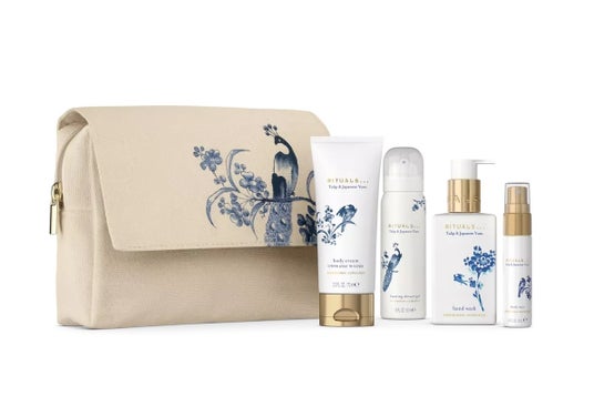 アムステルダムコレクション柄キャンバス地ポーチに、フォーミングシャワージェル ミニサイズ(50ml)、ボディミスト(20ml)、ボディクリーム(70ml)、ハンドウォッシュ(110ml)の4点を入れたセットを限定価格にてご提供します。