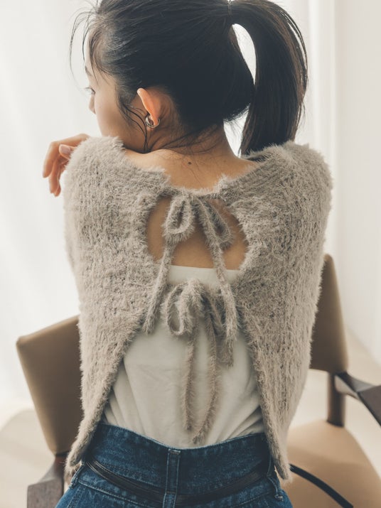Mini Pearl Sleeve Rib Knit : ¥8,900