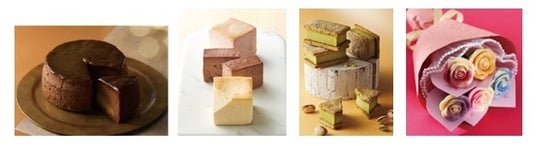 【初登場】<ラメリー>キャラメルケーキ(1個) 2,000円、<ミスターチーズケーキ>Mr.CHEESECAKE assorted 3-Cube Chocolate Raspberry(3個入)4,428円 ※当店限定、<ピスタ&トーキョー>サブレサンド ピスターシュ ピスタチオ&ピスタチオ(3個入)1,836円 ※当店限定、【初登場】<メサージュ・ド・ローズ バイ カレンド>ベルローズ5本(マジカルラッピング)3,219円 ※当店限定