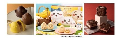 <ぴよりん>ぴよりん Bonbon de chocolat (3個入)2,000円、<東京ばな奈ワールド>ちいかわ バナナプリンケーキ(4個入)810円 (8個入)1,706円 ※1月17日(金)→31日(金)まで出店 ※お一人様各2点まで、<ベリールビーカット>ショコラTHEいちごバターサンド(3個入)1,890円 ※2月1日(土)→14日(金)まで出店 ※当店限定