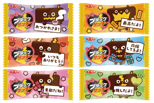 ●ブラックサンダーのキャラクターたちがデザインされた、全6種類のメッセージ付き